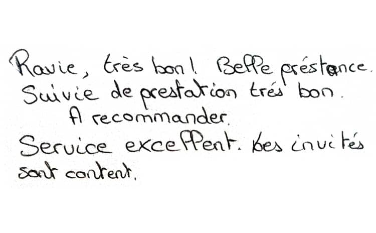 Tarti’fêtes Traiteur est honoré de la confiance accordée par une clientèle diversifiée, symbole de notre engagement envers l’excellence et le professionnalisme. La discipline rigoureuse qui guide chacune de nos prestations est le socle de notre réputation, assurant une qualité constante dans nos services.