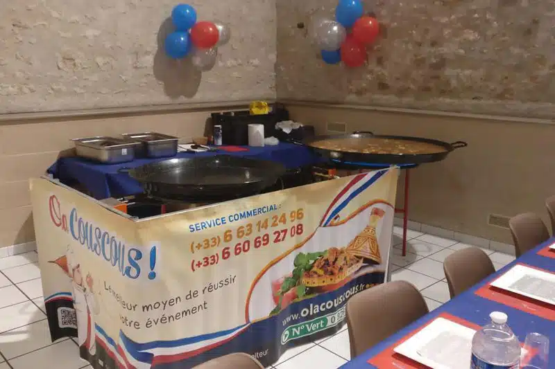 Que votre événement ait lieu au cœur de la capitale, dans les quartiers dynamiques comme Belleville, Barbès ou plus résidentiels tels que le 16ème arrondissement, Ola Couscous Traiteur halal dessert tout Paris et sa périphérie. Nous prenons en charge chaque détail : devis gratuit personnalisé, animation culinaire interactive et possibilité de louer tout le matériel événementiel nécessaire (tables, chaises, vaisselle, nappes). Complétez votre réception avec nos délicieux apéritifs variés sans viandes ainsi qu’une sélection de desserts orientaux et de fromages.
